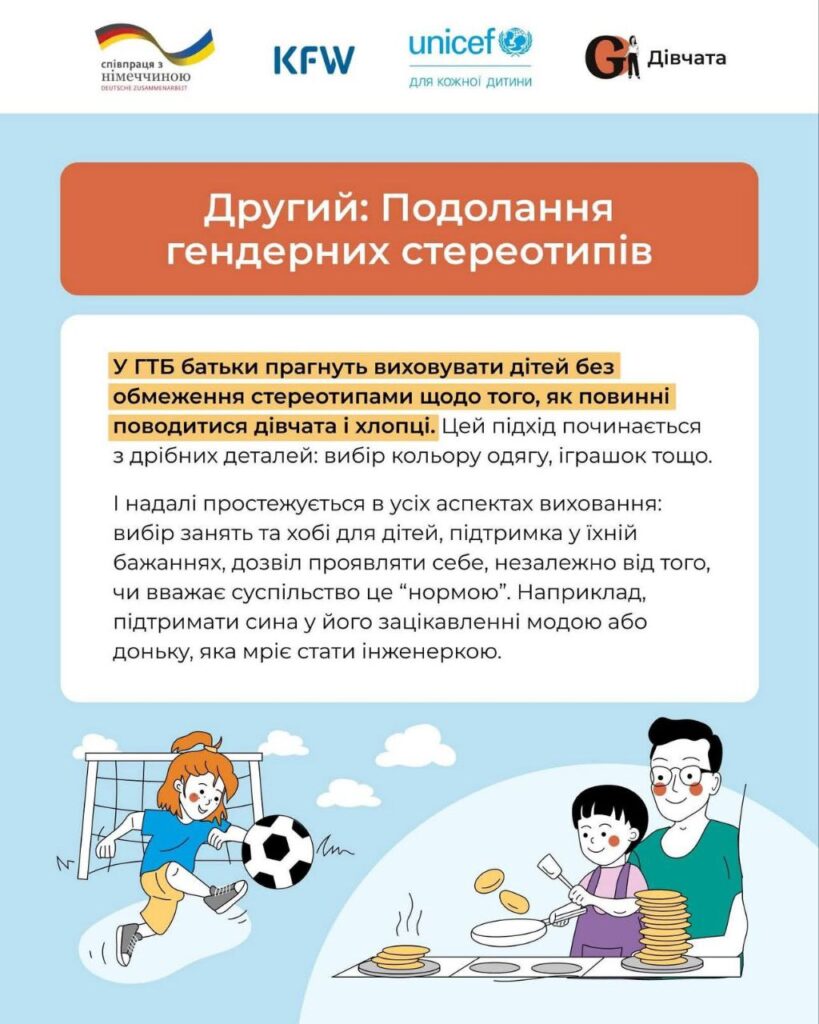 Гендерно трансформаційне батьківство (ГТБ) або ж батьківство без гендерних стереотипів може здаватися надто складним для того, щоб практикувати його в реальному житті, однак це не так — підхід до виховання дітей можливо змінити. Звісно, це може потребувати деяких зусиль від батьків/опікунів.