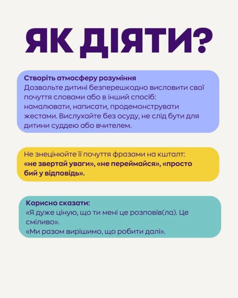 Вчасна увага дорослих здатна допомогти дитині впоратися із його наслідками.