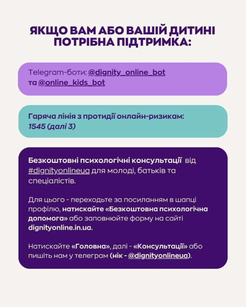 Якщо вам або вашій дитині потрібна підтримка, ви завжди можете звернутися: