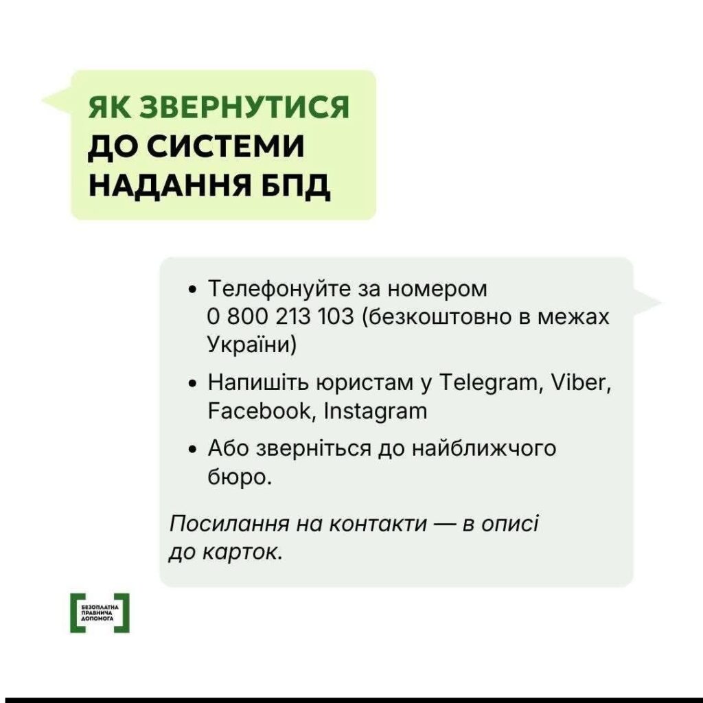 🔎 Всі контакти за посиланням: https://legalaid.gov.ua/kliyentam/yak-otrymaty-bpd